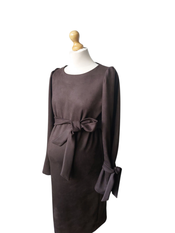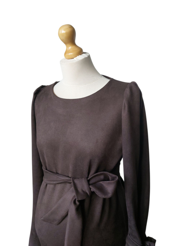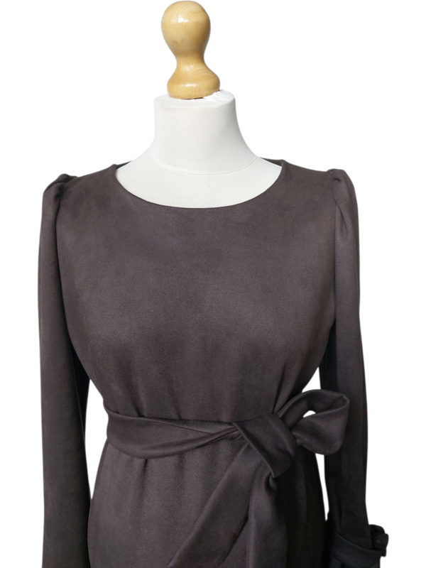 Jurk Erica 2. Hetzelfde model als jurk Erica 1 alleen nu in een prachtige rekbare scuba suède. Wat heerlijk warm en comfortabel draagt. En gewoon in de wasmachine kan. Helemaal in de kleur van deze winter.